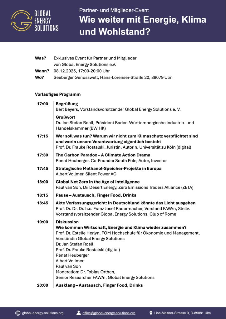 Global Energy Solutions: Wie weiter mit Energie, Klima und Wohlstand?